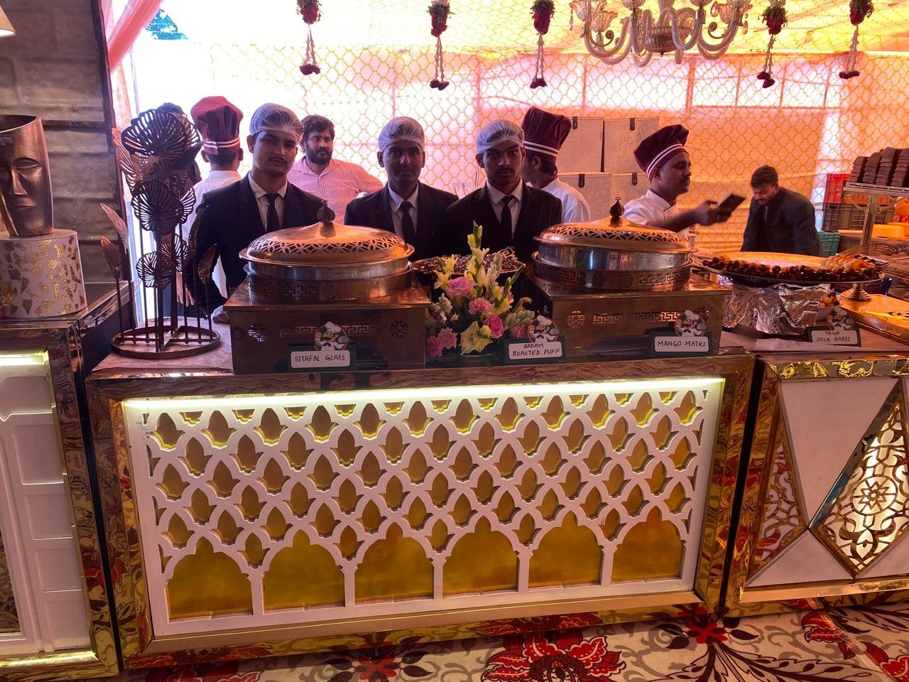 The service from the caterer was excellent. They made sure the food was perfect and on time for our series of events leading up to the marriage and the marriage dinner. We were very happy with the value we received. Got their contact from my cousin. I would definitely recommend them to others!